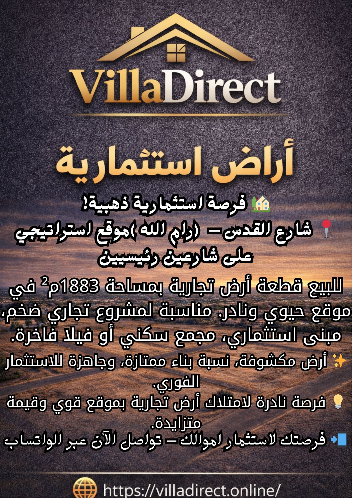 🏡 أرض تجارية – شارع القدس | موقع استراتيجي على شارعين رئيسيين | 1883م² جاهزة للاستثمار | مناسبة لمشاريع تجارية